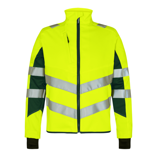 Dehnbare und funktionelle fluoreszierende Arbeitsjacke in modernem Schnitt. Die Jacke hat einen hohen Kragen und einen längeren Rücken. Das dehnbare Material bietet optimalen Komfort und Bewegungsfreiheit. Reißverschluss vorne. Zwei geräumige Seitentaschen und eine Brusttasche – alle mit Reißverschluss. Die Ärmel haben einen zusätzlichen Sturmbund aus Rippmaterial. Die Sturmmanschette hat ein Loch für den Daumen und kann zum zusätzlichen Schutz vor Kälte über die Hand gezogen werden. Reflektoren über den Schultern und um die Ärmel und Taille. Klasse 2. Getestet nach 50 Maschinenwäschen.
