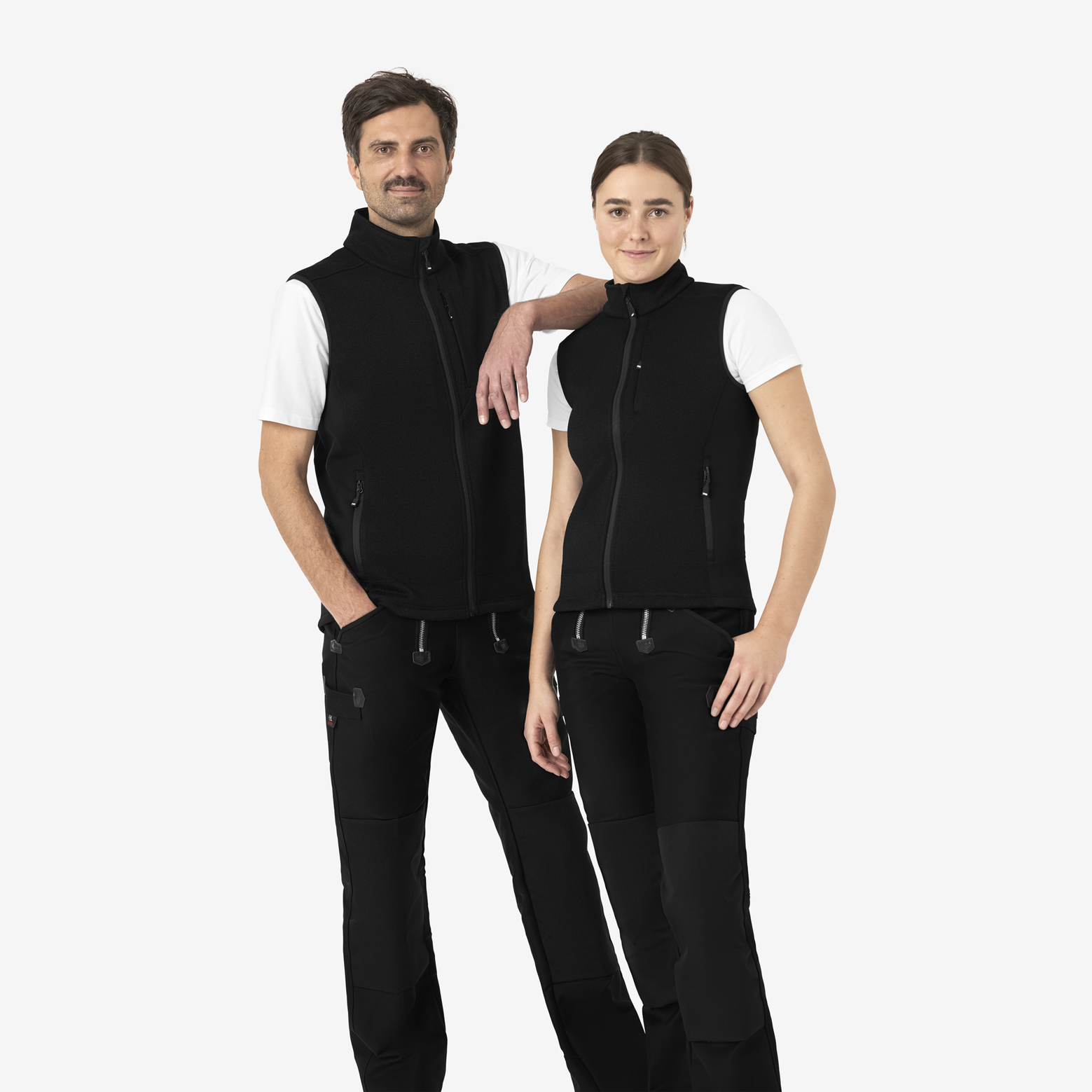 Die FHB Damen-Strick-Fleeceweste ELSA kombiniert angenehme Wärme, Bewegungsfreiheit und einen modernen, femininen Schnitt.