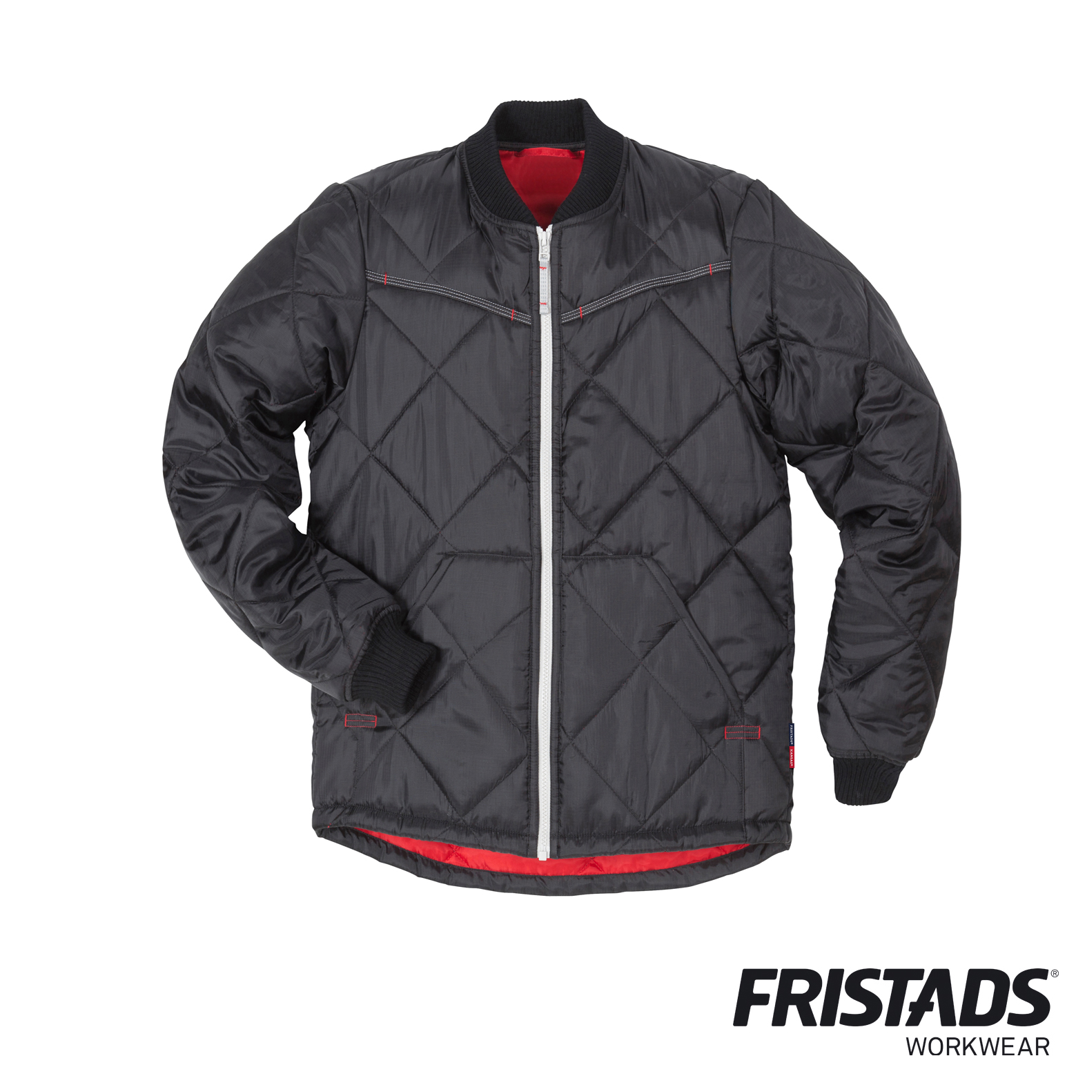 Dank der elastischen Bündchen an Kragen und Ärmeln bietet die Jacke einen angenehmen Sitz und hält die Wärme zuverlässig am Körper. Das rote Kontrastfutter sorgt für einen modernen Look, während funktionale Taschen ausreichend Stauraum für Arbeitsutensilien bieten.