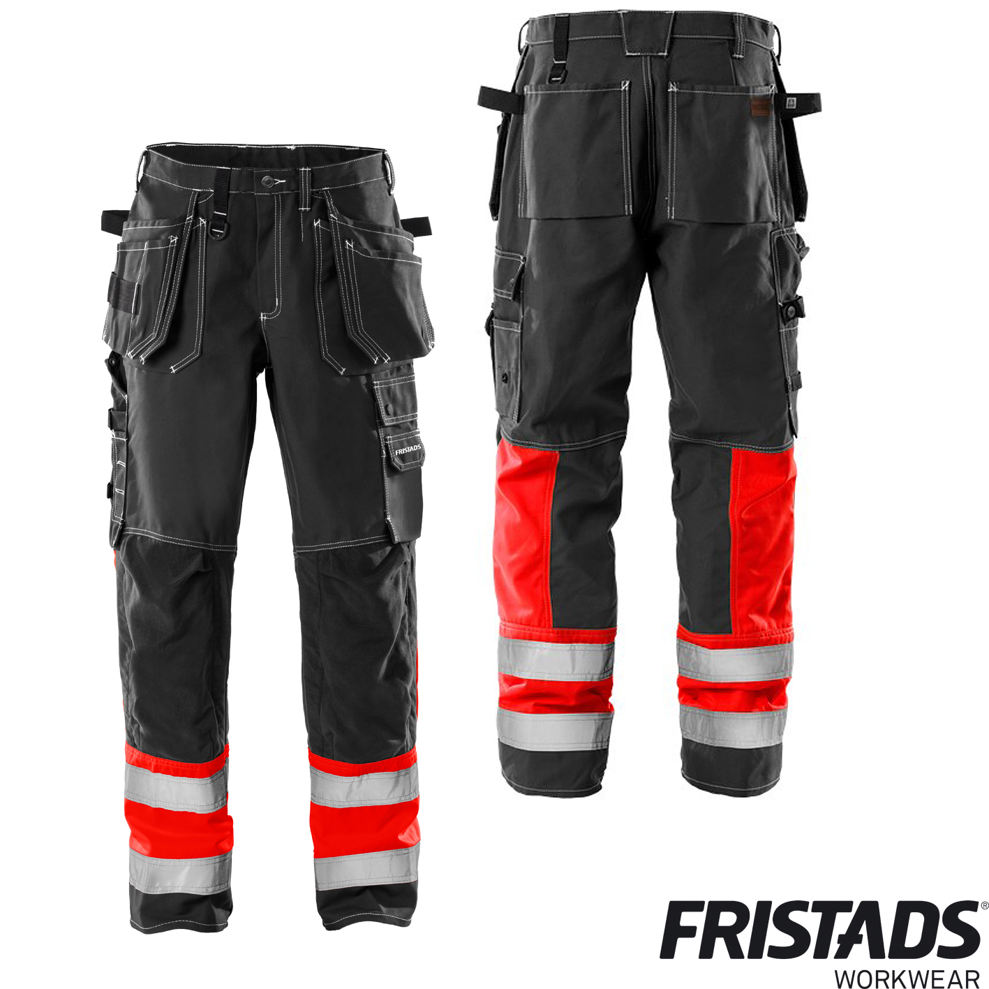 Fristads® funktional ausgestattete Warnschutz-Handwerkerhose, zu 100% aus robustem FAS®-Baumwollmaterial, besonders gut auf Baustellen einsetzbar.