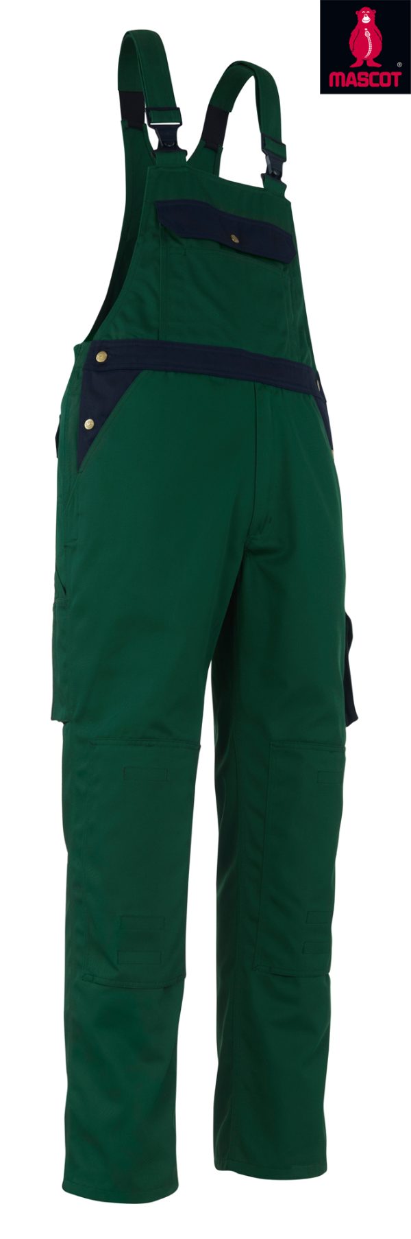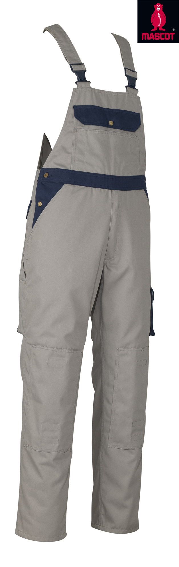 Zweifarbige Mascot Latzhose mit höhenregulierbaren Knietaschen.