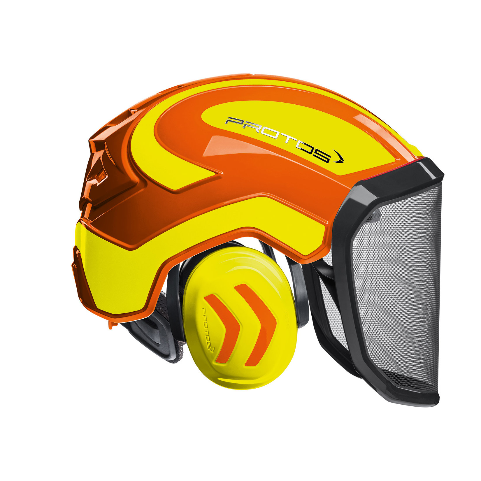 PROTOS Forest Schutzhelm | Forsthelm mit Visier & Gehörschutz | orange/gelb