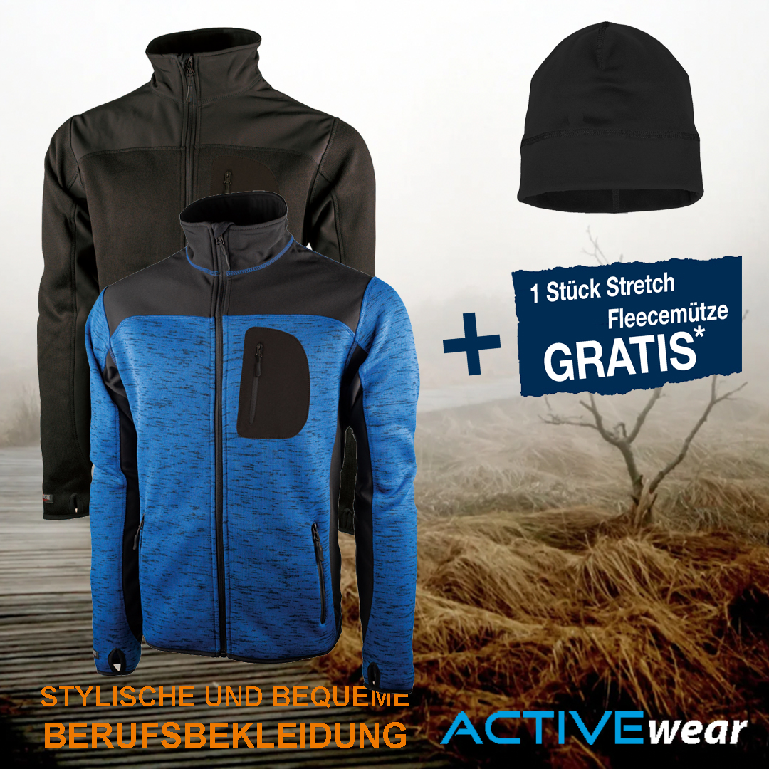 Strick-Softshell Jacke IMST plus + Stretch-Fleecemütze schwarz