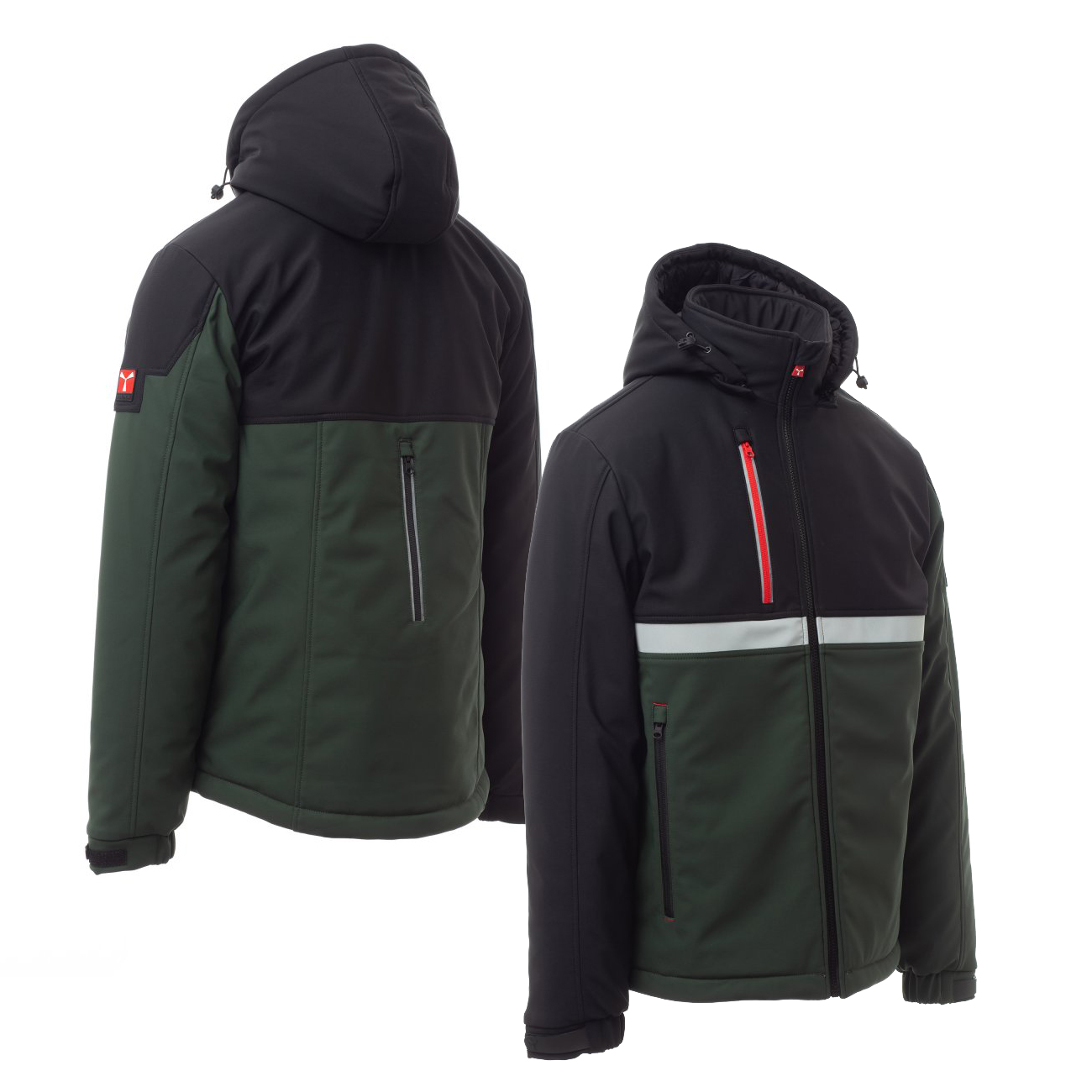 Die wattierte Herren-Softshell ist mit einem SBS-Reißverschluss mit Semi-Auto-Lock-Metallschieber ausgestattet. Die abnehmbare Kapuze mit regulierbarem Kordelzug sorgt für zusätzlichen Wetterschutz. Reflexstreifen auf Brusthöhe erhöhen die Sichtbarkeit.
